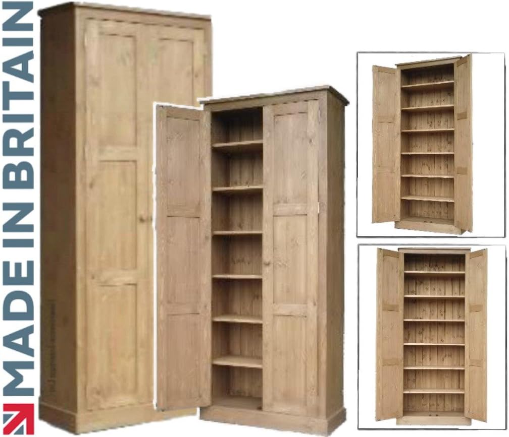 This pantry is made from sturdy, wire brushed wainscot inset pine veneer panels and a solid pine frame.